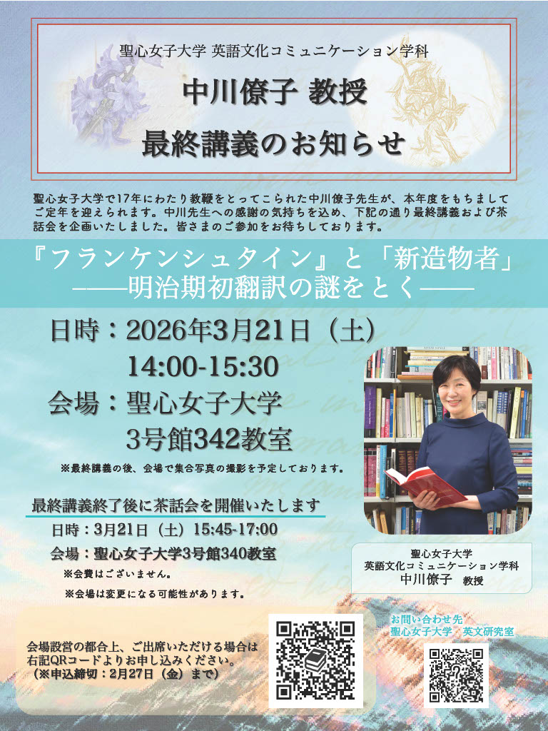 【お問い合わせ】 英文研究室(中川僚子教授 最終講義専用)